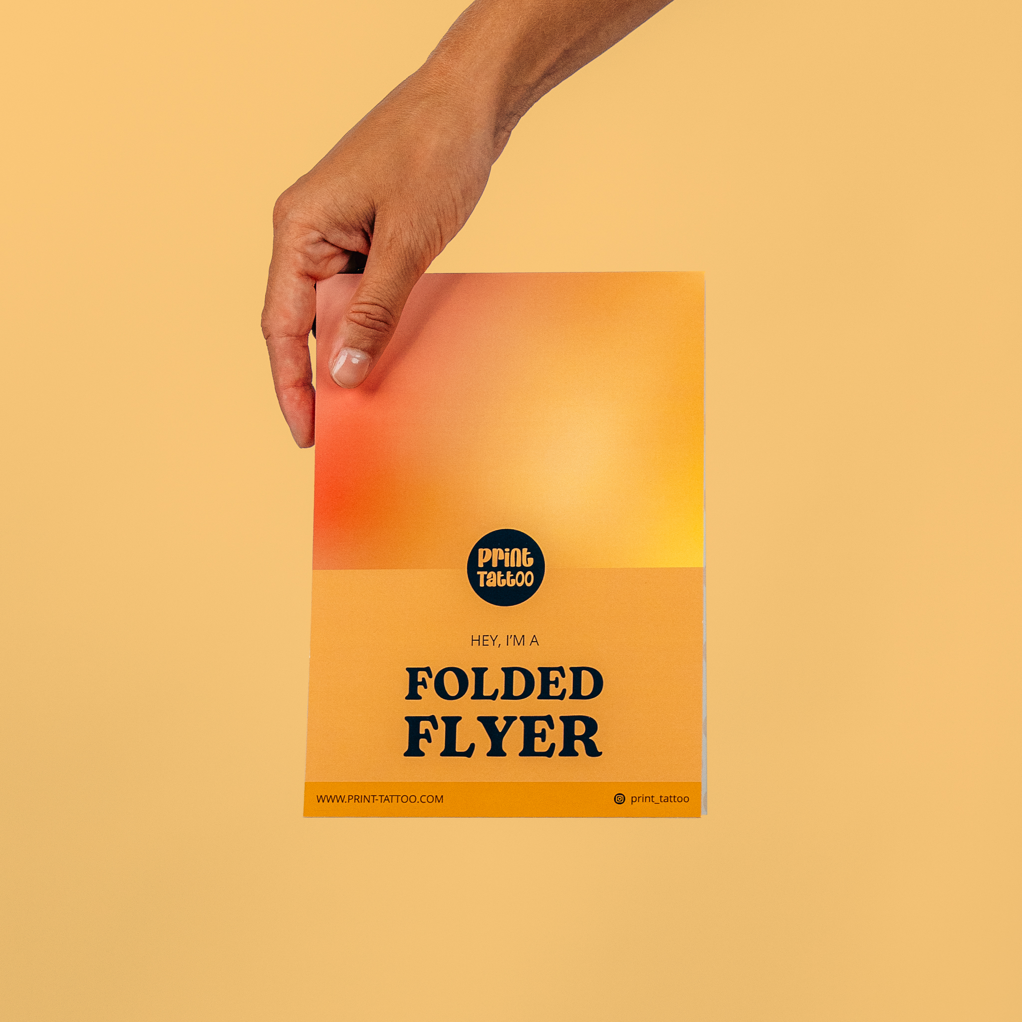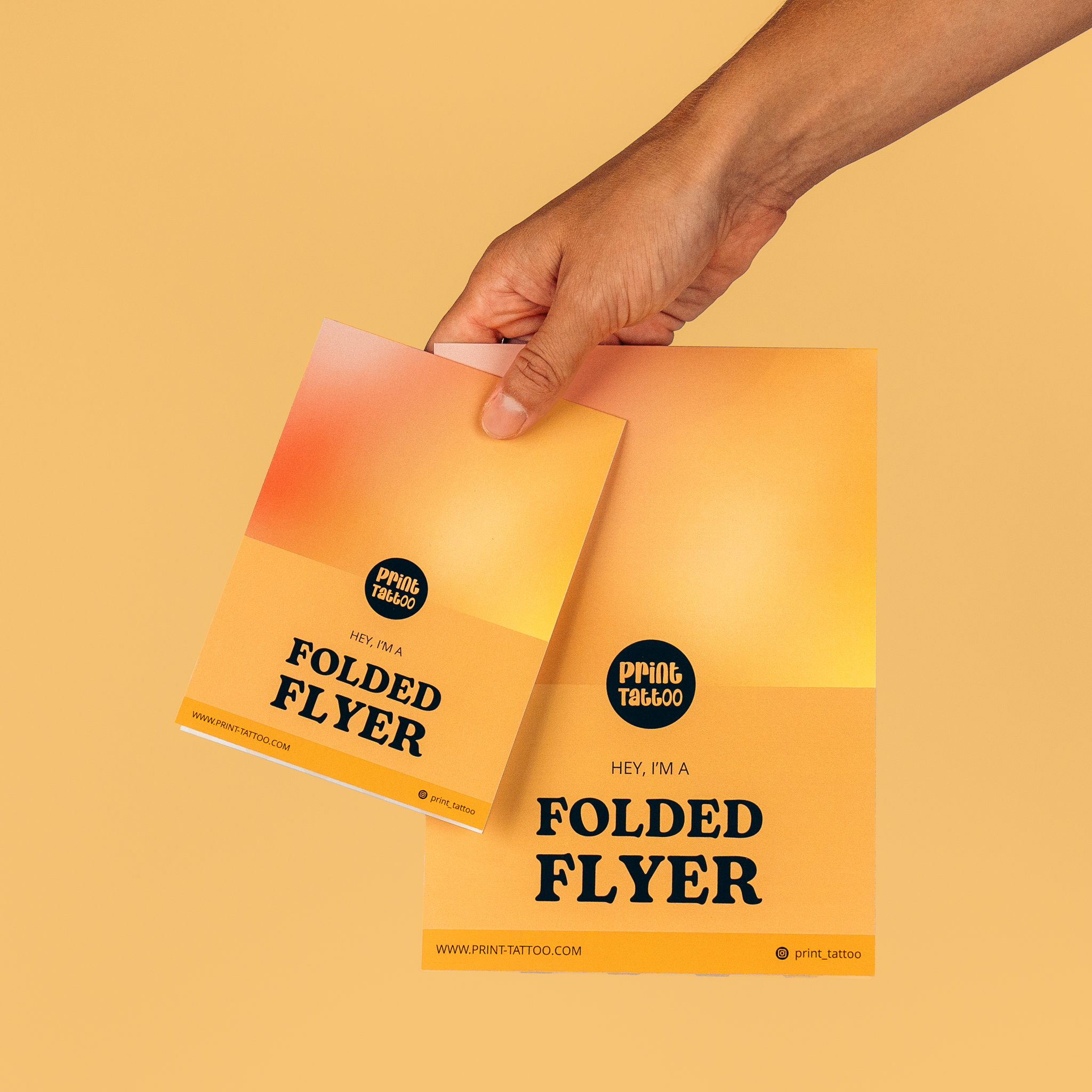 Neben unseren individuellen Klebetattoos bieten wir auch maßgeschneiderte Verpackungslösungen an. Faltflyer sind die ideale Lösung, wenn du Informationen übersichtlich präsentieren und gleichzeitig ein Tattoo geschützt verpacken möchtest. Außen deine Botschaft, innen das Tattoo – fixiert mit einem speziellen Klebepunkt. So entsteht eine praktische und zugleich kreative Verpackung, die direkt einsatzbereit geliefert wird.