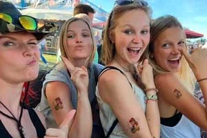 Für alle denen das doch etwas zu weit geht, oder jene die das Motiv einfach nur mal testen möchten, sind die temporären Tattoo-Stickers von PRINT TATTOO genau das Richtige. Schnell und einfach aufgetragen lassen sie sich genauso einfach und unkompliziert wieder entfernen. Ideal als Party Gag, für den Festivalbesuch oder zu Promotionzwecken.